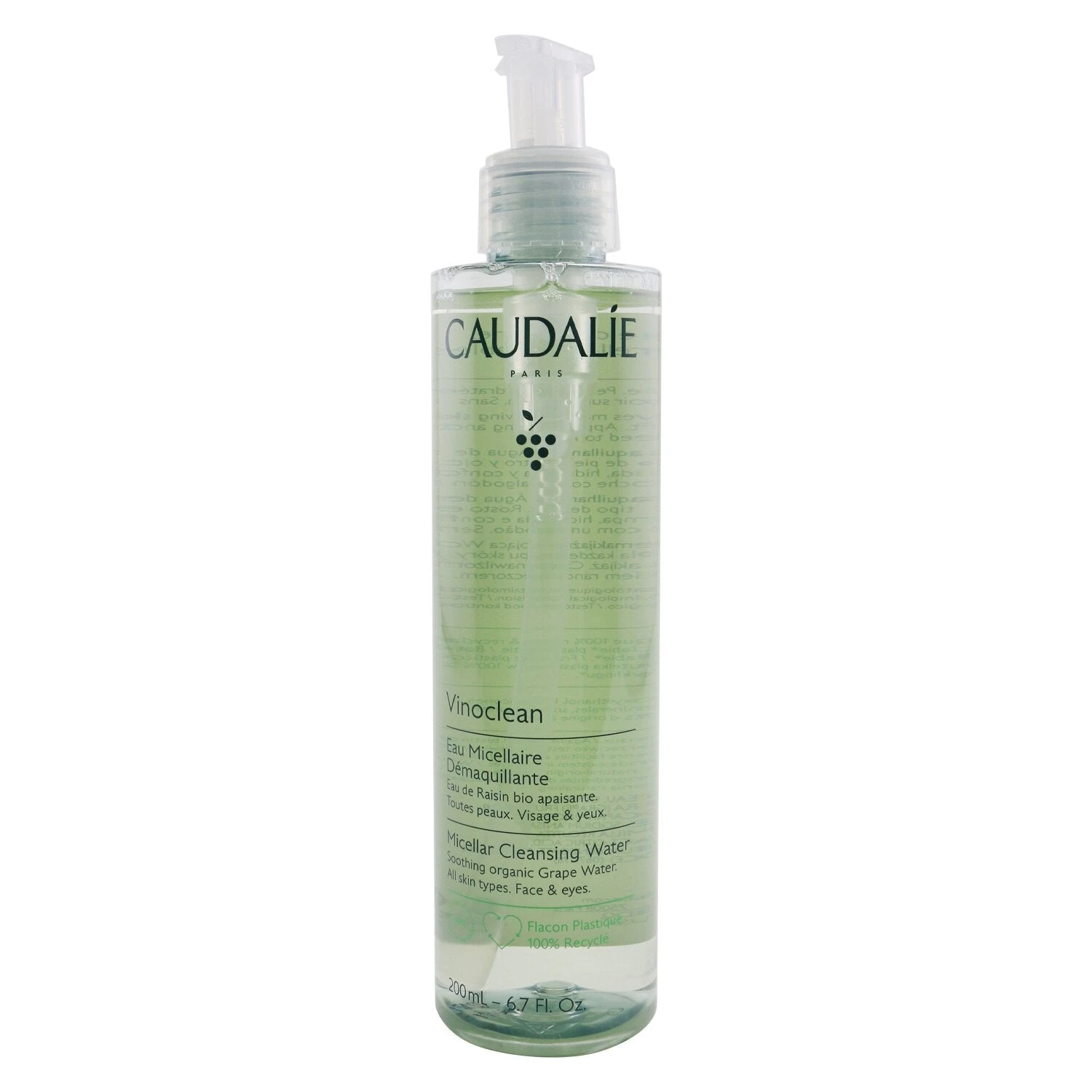 An eco-friendly facial cleansing water with 98% natural origin ingredients Helps remove makeup & cleanses the face & eyes in one go, while respecting skin’s natural balance Rich in organic Grape Water to hydrate & soothe even the most sensitive skin Infused with a super fresh fragrance to boost the mood Leaves skin feeling soft & comfortable Perfect for all skin types Soap-free, tested under ophthalmological & dermatological supervision Free of parabens, phenoxyethanol, phthalates, mineral oils, PEGs, silicones, sodium laureth sulfates or animal-derived ingredients