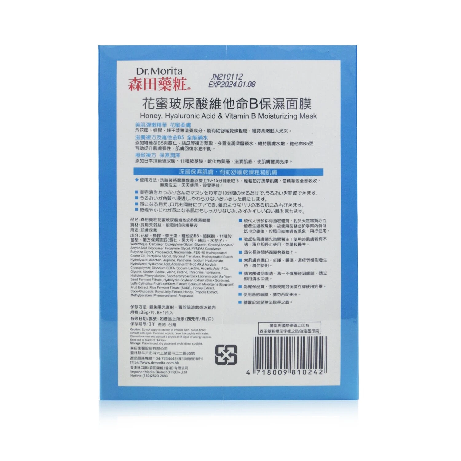 Dr. Morita Honey, Hyaluronic Acid & Vitamin B Moisturizing Mask 9pcs