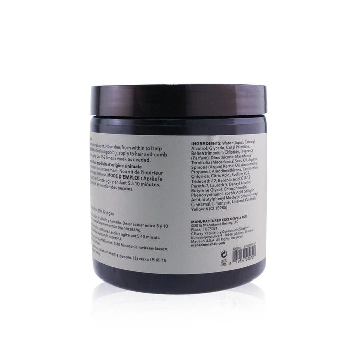 A repairing & nourishing mask for dry, damaged & color-treated hair Features a color-safe, 92% naturally derived & 100% vegan formula Powered by Macadamia & Argan Oils, rich in Omega 3,6,7 & 9. Helps nourish hair from within to repair & defend against future breakage Instantly detangles & reduces frizz while replenishing moisture with no heavy build-up Unveils softer, shinier, bouncier, more manageable & healthier-looking hair Ideal for medium to coarse hair textures