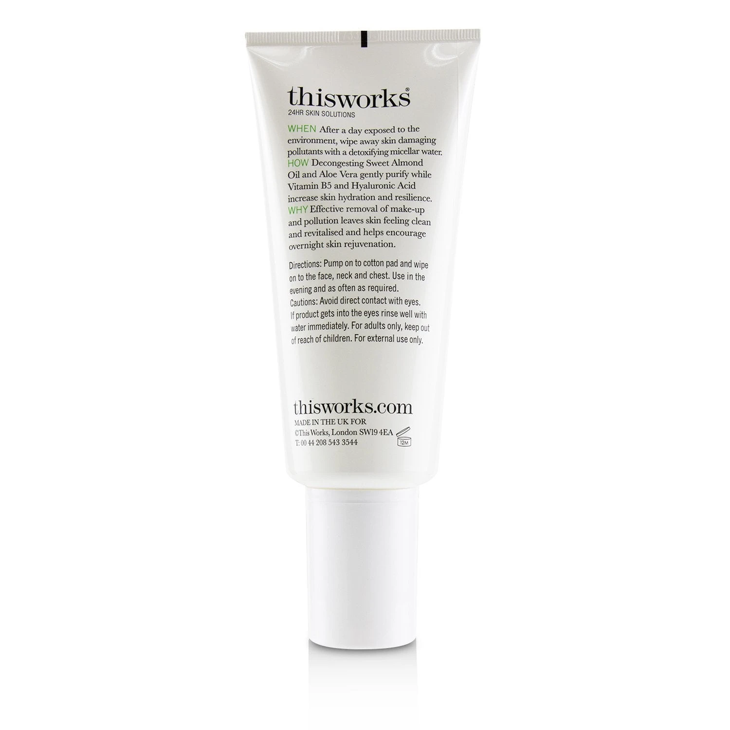 A detoxifying nighttime micellar cleansing water Formulated with Sweet Almond Oil & organic Aloe Vera Helps gently remove dirt & damaging pollutants while decongesting & restoring skin Blended with Liquorice Root to soothe skin inflammation Prevents the damage & premature ageing caused by pollution Leaves skin purified & revitalized Suitable for sensitive skin